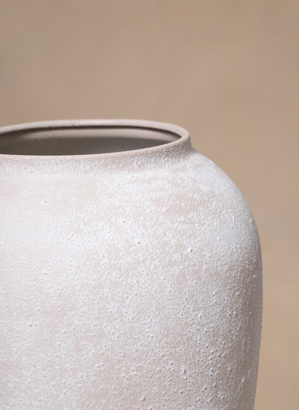 Dankzij de neutrale crèmekleur past de Oleo vaas moeiteloos in zowel moderne als klassieke settings.