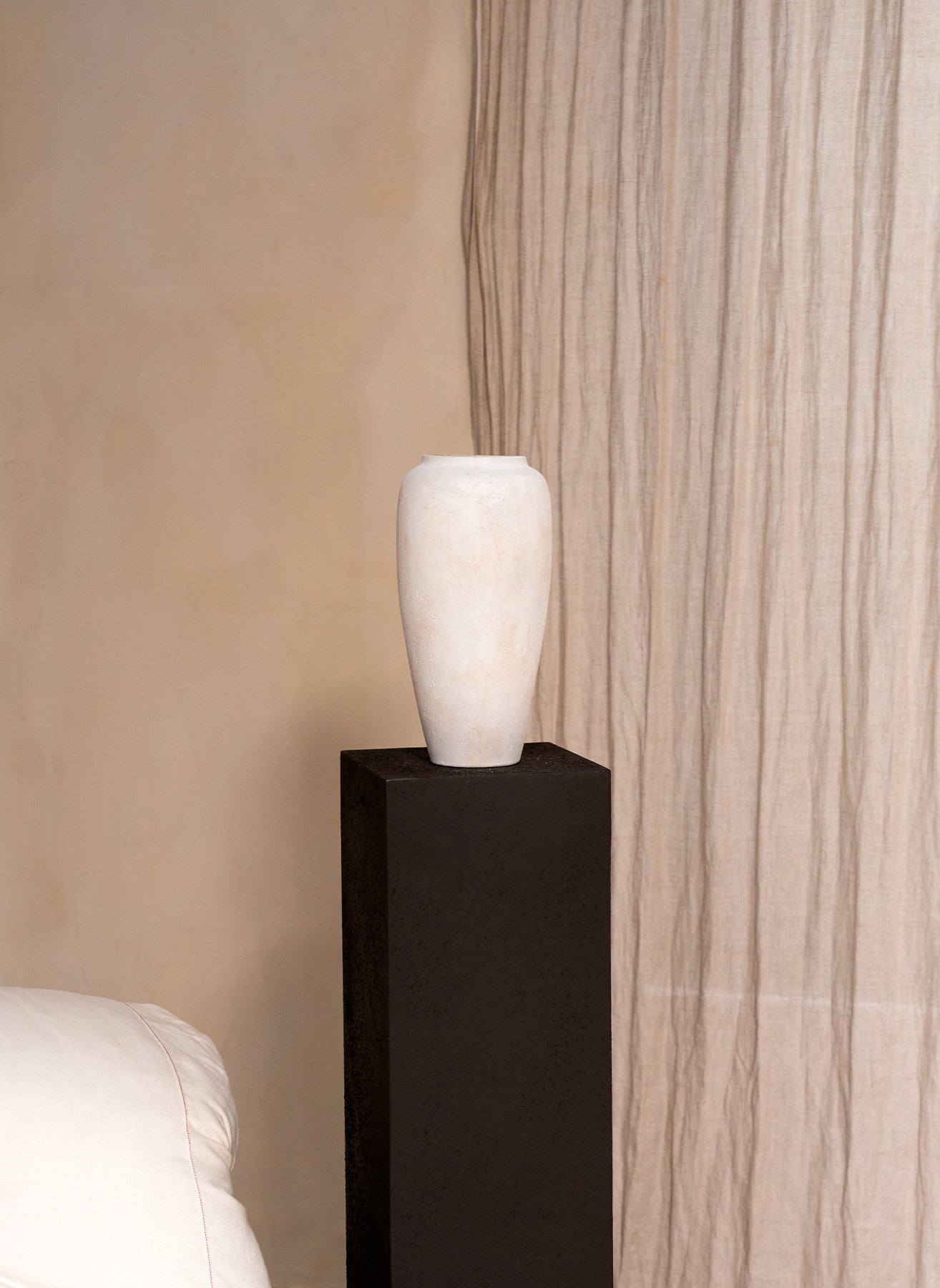 Die Amara Vase ist eine zeitlose Ergänzung für jedes Interieur – ein Statement-Stück, das sowohl solo als auch mit Blumen eine ruhige Eleganz ausstrahlt.
