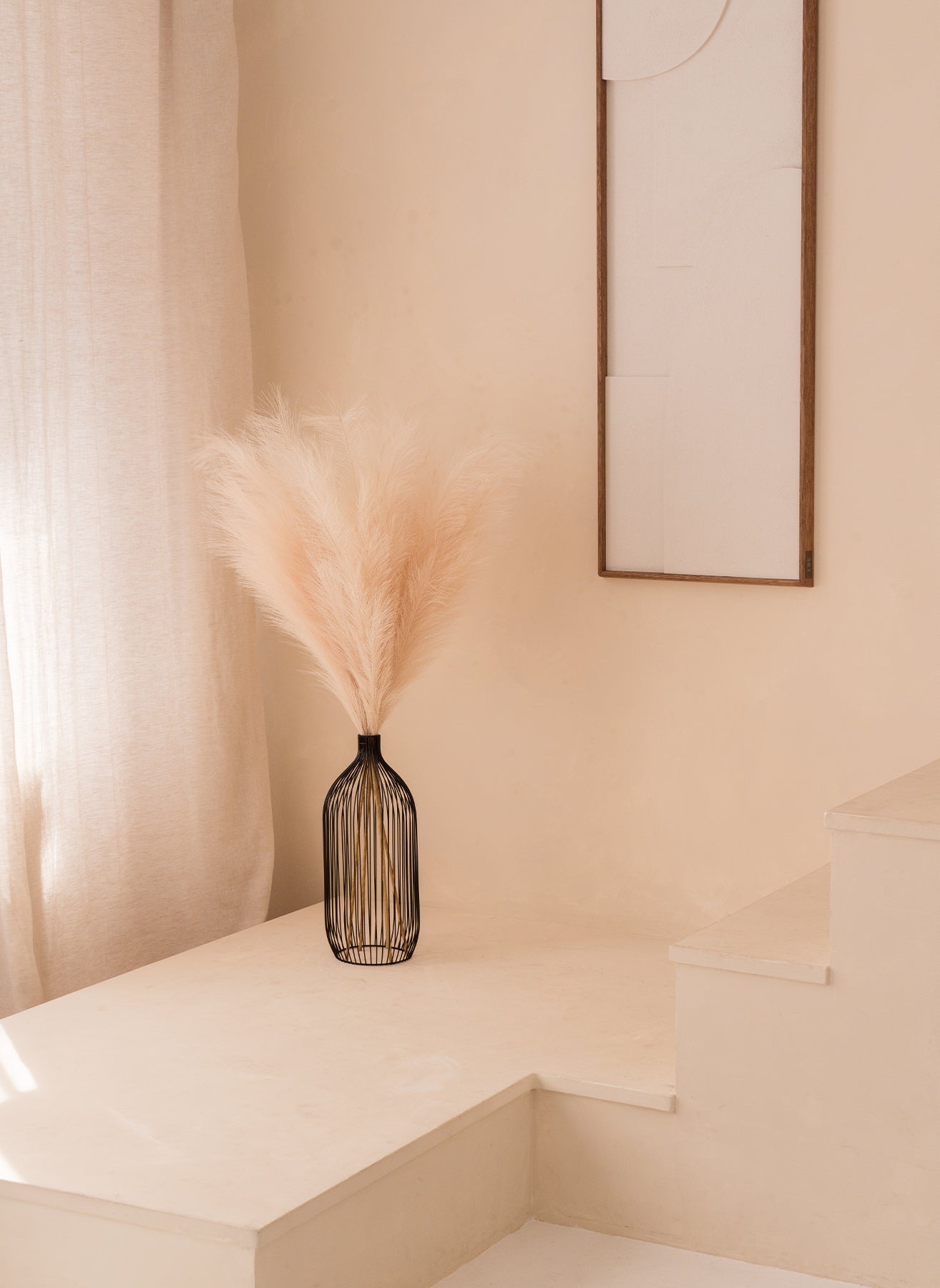 De Diva vaas heeft scherpe zwarte lijnen voor een moderne, minimalistische look die een mooi contrast vormt in combinatie met ons zachte, pluizige pampagras.