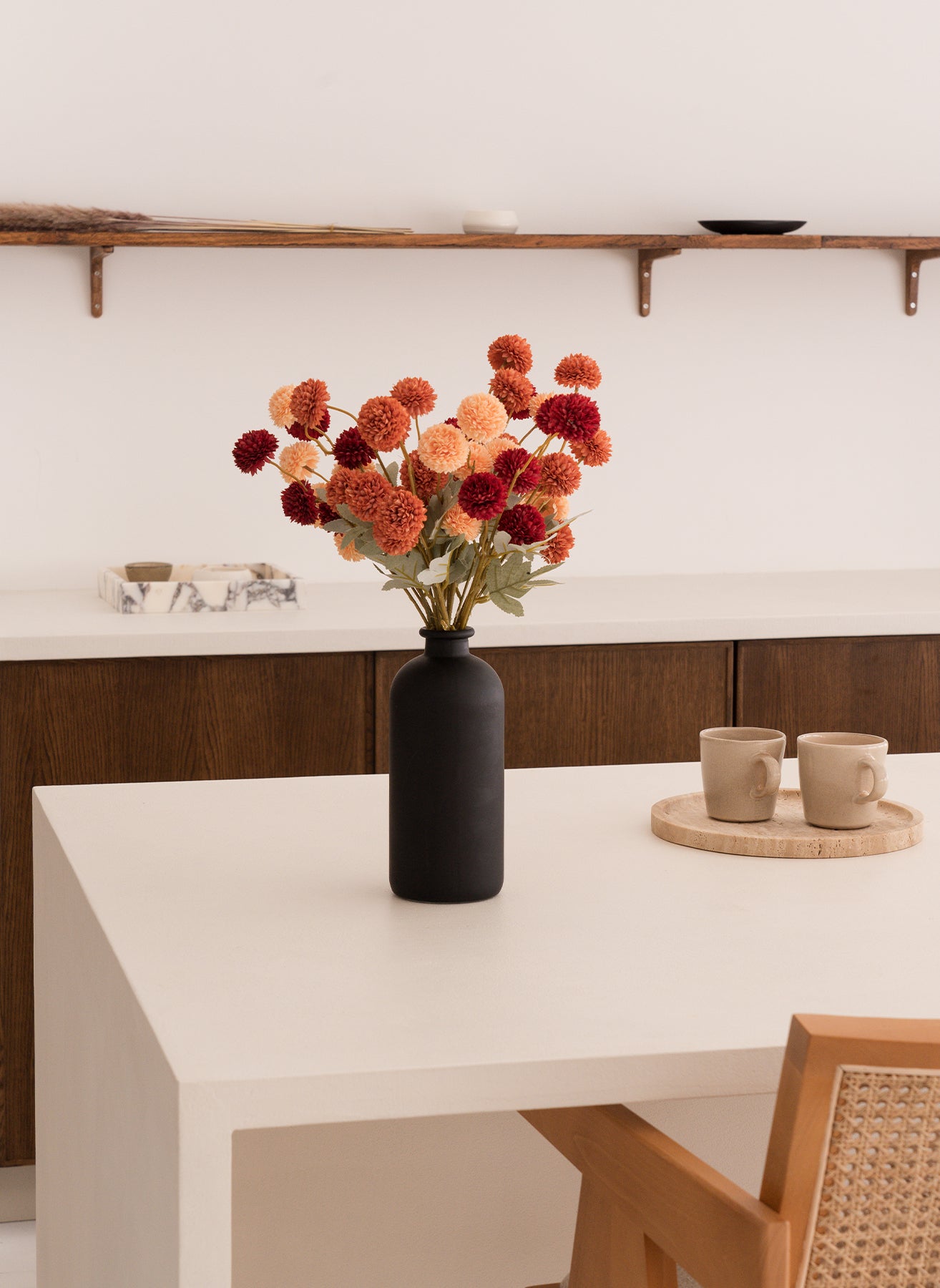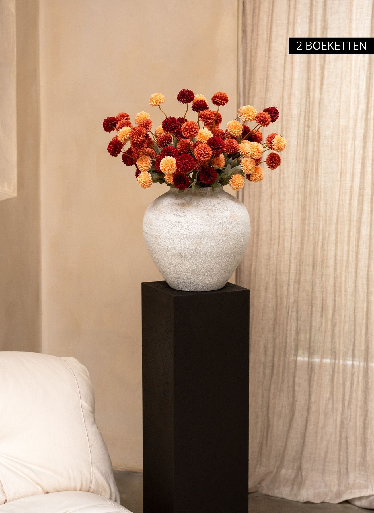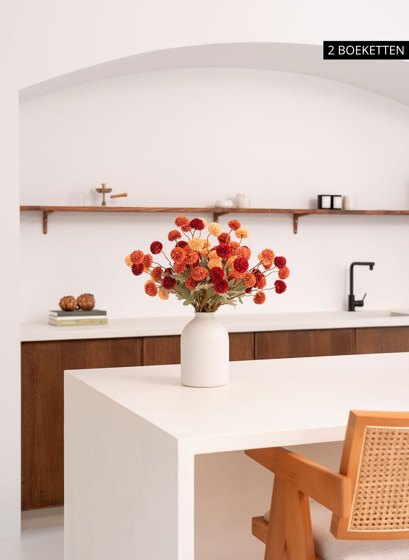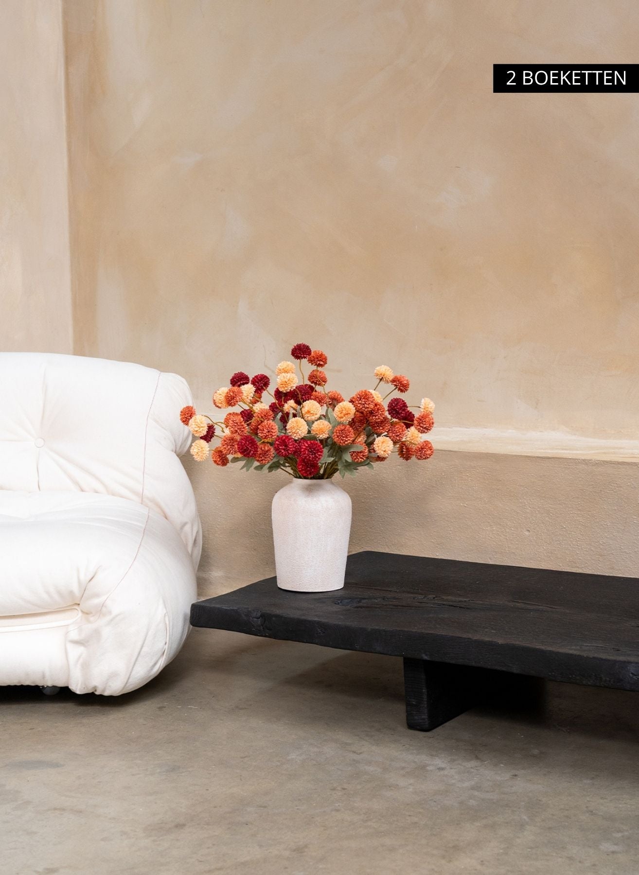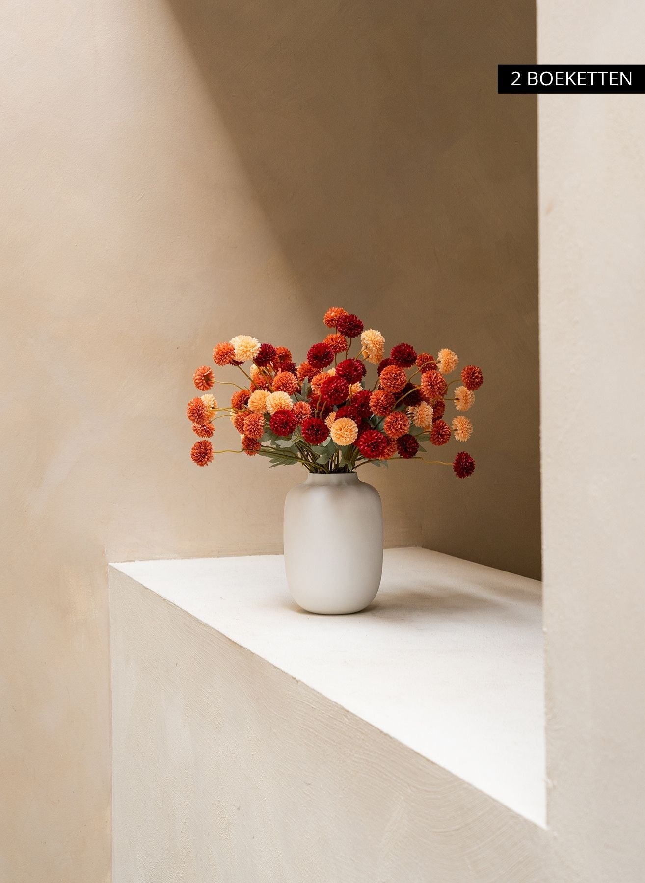 Onze Kiku bloemen brengen diepte en kleur in je interieur en blijven het hele jaar door perfect in vorm — zonder water, zonder onderhoud.