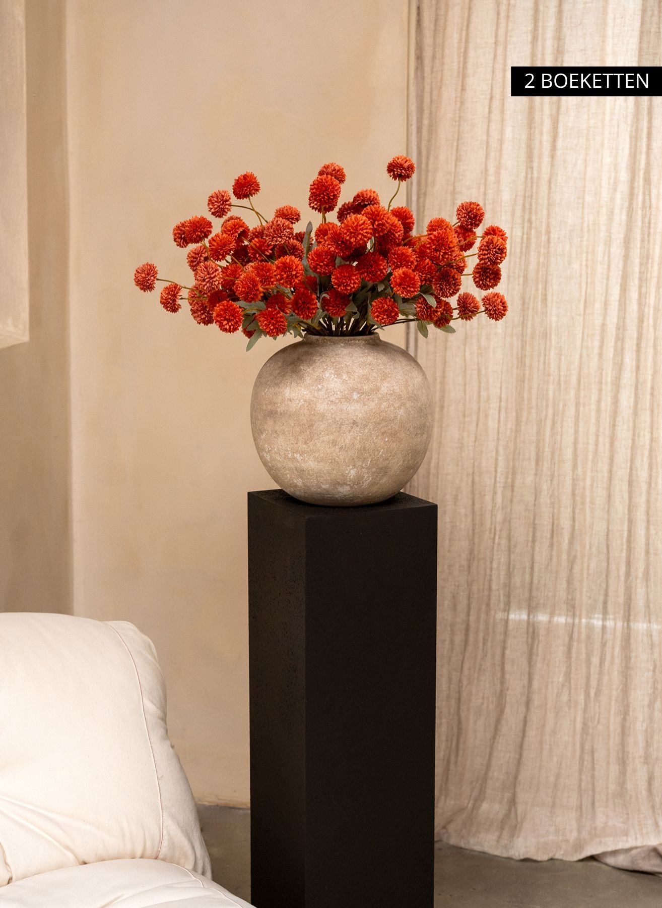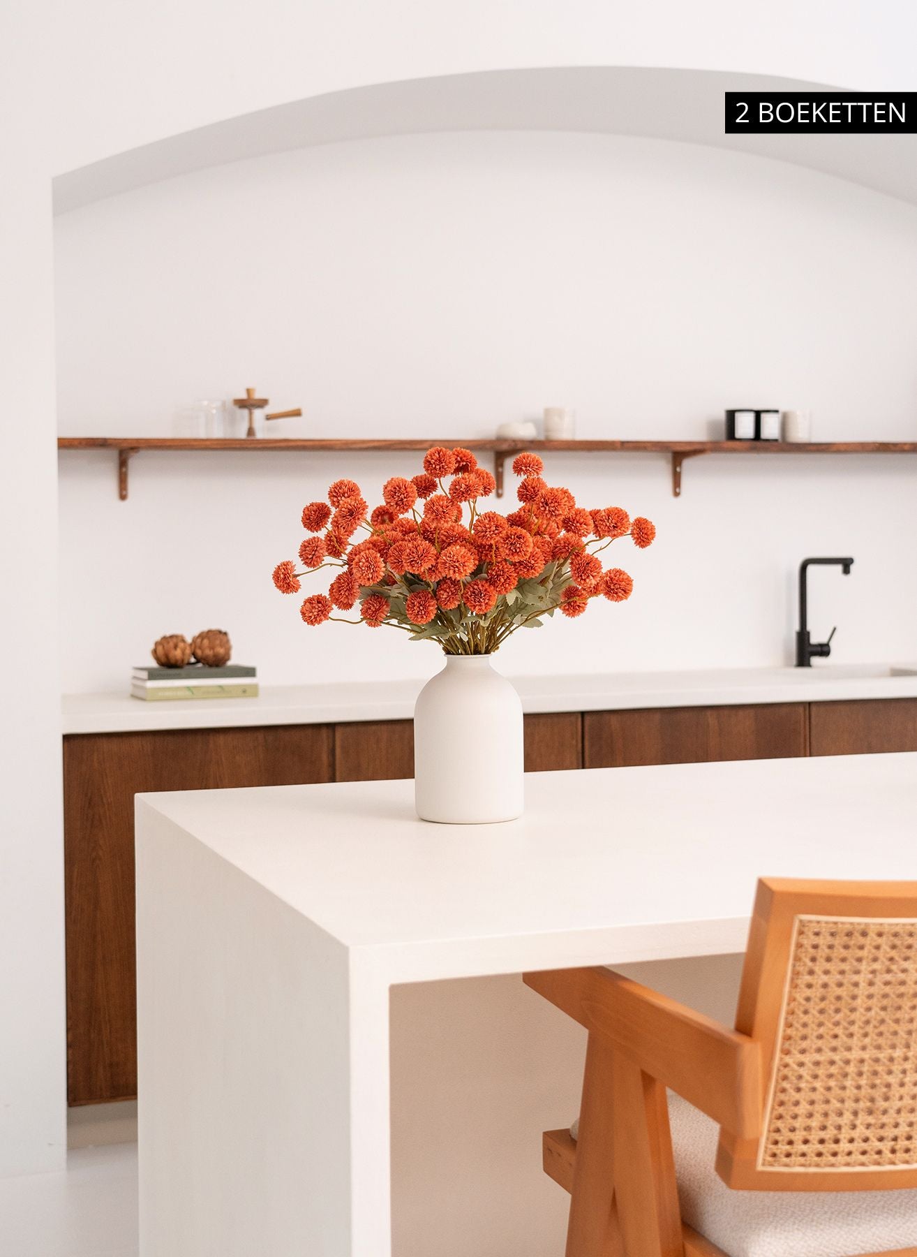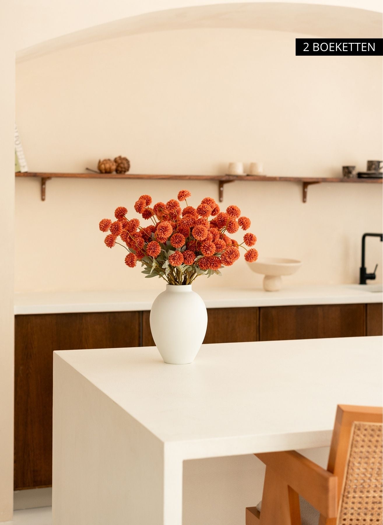 Onze Kiku bloemen brengen diepte en kleur in je interieur en blijven het hele jaar door perfect in vorm — zonder water, zonder onderhoud.