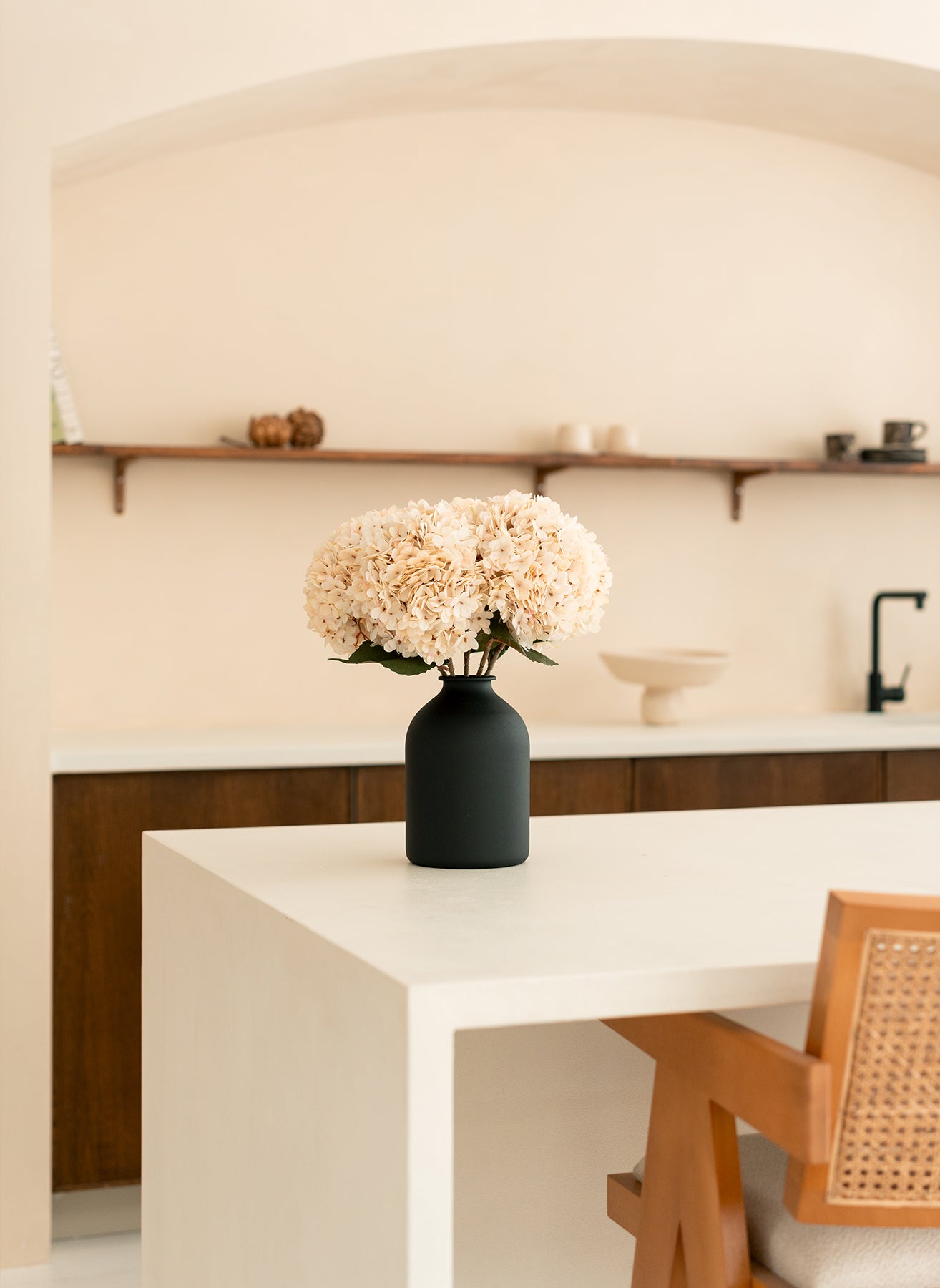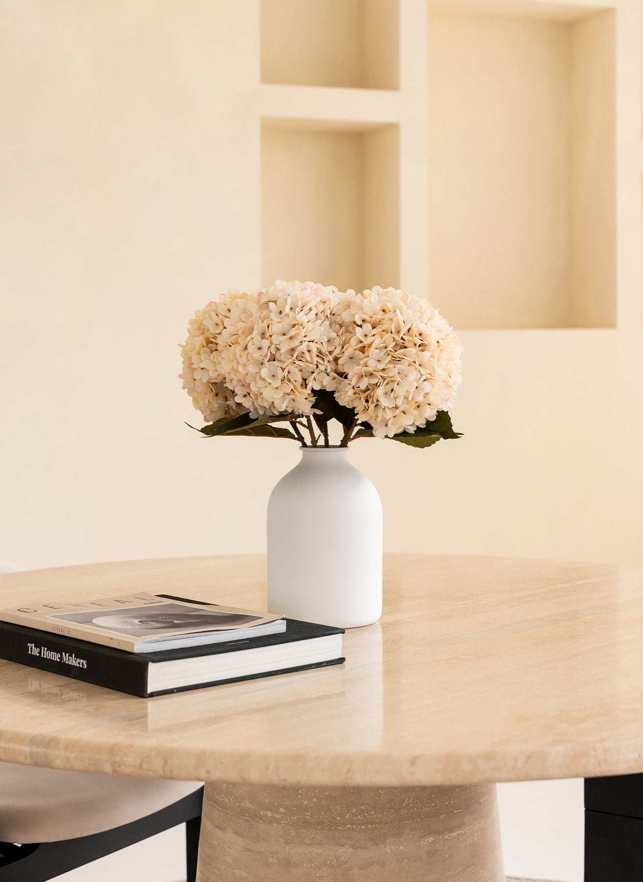 Dankzij de levensechte afwerking en zachte textuur voegt deze hortensia moeiteloos verfijning toe, zonder water of onderhoud.