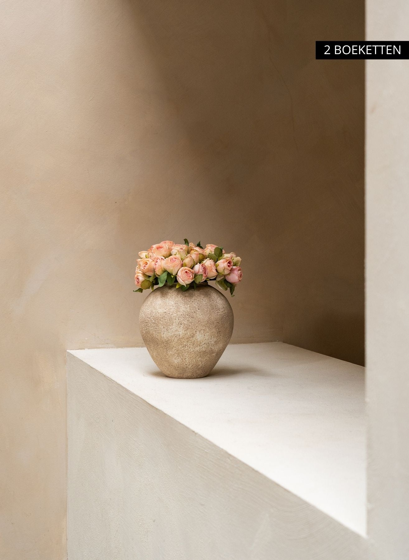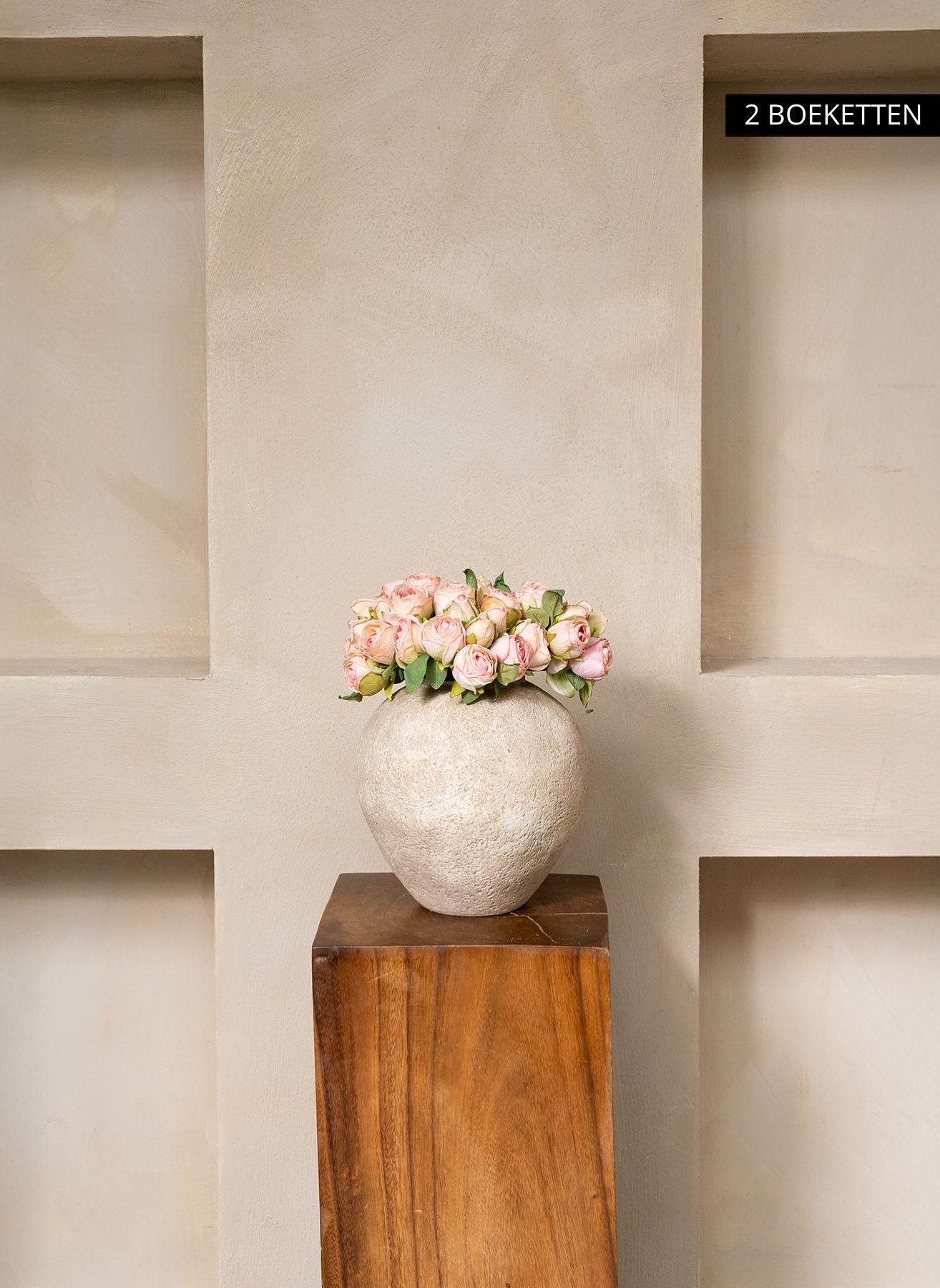 Eén boeket bevat 20 verfijnde mini roosjes in volle bloei. Combineer 2 boeketten voor 40 roosjes en een rijke, weelderige uitstraling in je interieur.