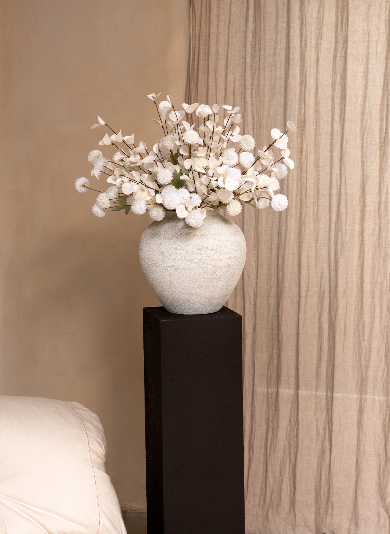 De mix van texturen en vormen zorgt voor diepte, balans en een verfijnde uitstraling die elke ruimte meteen naar een hoger niveau tilt.