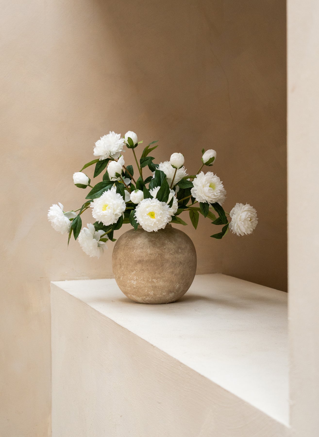 De volle bloemblaadjes en natuurlijke tinten geven elke ruimte meteen een elegante en verfijnde look.